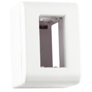 Ela é fabricada em termoplástico na cor branca e é composta por caixa, tampa com encaixe de pressão e o módulo. Além de contar com sistema modular, possui janelas para inserir canaletas de diferentes dimensões.